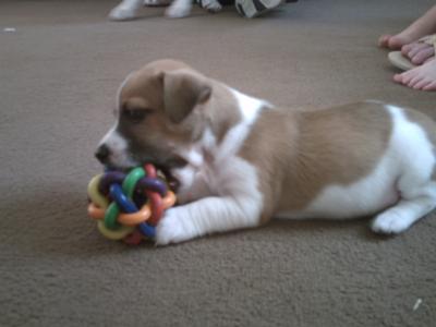 Hey, Thanks for sharing with us. He's a keeper. So can he do any tricks or what? I know, he's a JRT and of course he can. They are the best and smartest on the planet. I'm glad that he found you and is your bestest friend. My girl Ginger looks very much like him and they would play for hours.