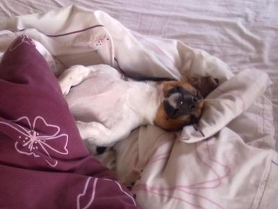 michka Sleeps in the most awkward places and positions. She's nearly 3 her birthday is on Oct 13th and has done this since she was a puppy. Upside down. Precariously perched or under something. I wouldn't have her any other way.