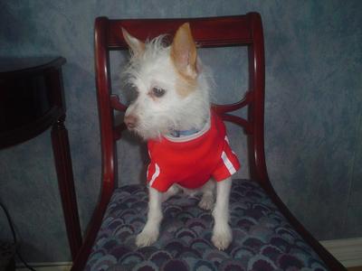 Ashley is 16 months old. She is a white/black Jack Russell. Her Mother Buttons is white and her Father Nails is Brown/White. She weighs in at 24pounds all muscle. She loves playing Frisbee and soccer in her backyard. Also she loves to go to the lake and play with the Canadaian Geese. She loves to ride in the front seat on the arm rest. She loves to watch Nascar Racing her favorite Driver is Tony Stewart. She loves to go play with her Great Grandma, Grandma and Mother from time to time. She just got a swimming pool which is loves to swim with her masters. She is delight to the family and loves to give you a kiss at first sight..