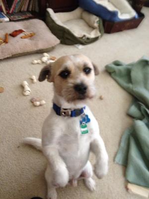 Is a Jack-shitzu mix with lots of Love And Energy. He stands up on his behind for several mi nuts asking for his Belly to be rubbed.