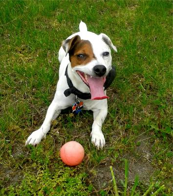 Sarah is a four year old Jack Russell Terrier. We just recently adopted her, we are her third home and she took to us instantly. She is very loving and thinks she is "people".