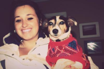 She has a red sweater she wears when she goes outside and she gives me a look like she is saying, " really ma?! my other friends aren't wearing them why do i have to?"