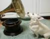 As she got stronger, she used to sit out on the lawn with our old spaniel Ace, who puppy-sat her. As she got bigger, she developed a passion for bath plugs and her ears stood straight up. She never did get very big... at fourteen she is looking frail and greying a lot. Her early bad start left her with digestive problems so she has "bad tummy" a few days a month and can't eat. She still has a few problems with claws and teeth, owing to the calcium deficiency as a pup. She is deaf. However - she is a happy fey little thing, and on her good days she hops about as spry as a cricket. Love ya, Tess!