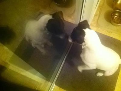 My reason for contacting you is Brandy's barking. She is not an overly nervous pet but this is an anxiety type of bark. She barks at people riding bikes by the house (fenced yard), horses riding by the house and funnily enough her reflection. She does not have a problem with the neighbors dogs or birds or rabbits. I have tried acknowledging the intruder. I have worked on a 'no bark' command. (she knows 'speak'} I close the curtains at night so she cannot see herself in the darkened windows. I encourage her 'talking' and discourage barking.